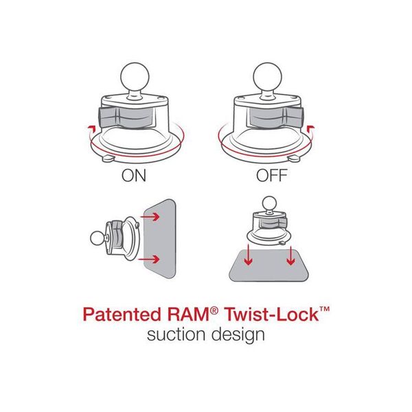 *Prísavná základňa RAM® Twist-Lock™ je ideálna pre čelné sklá vozidiel a iné neporézne povrchy.