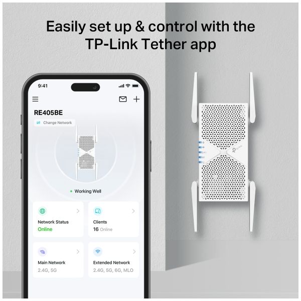 TP-Link RE405BE – BE6500 Dual-Band Wi-Fi 7 Range Extender
