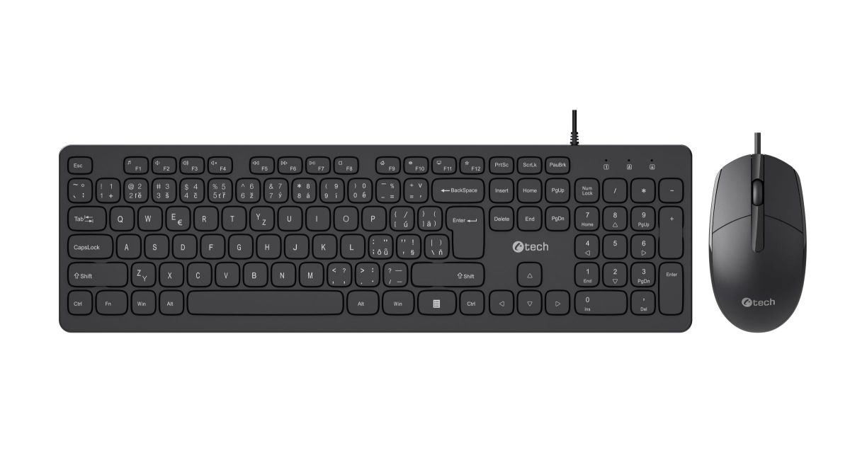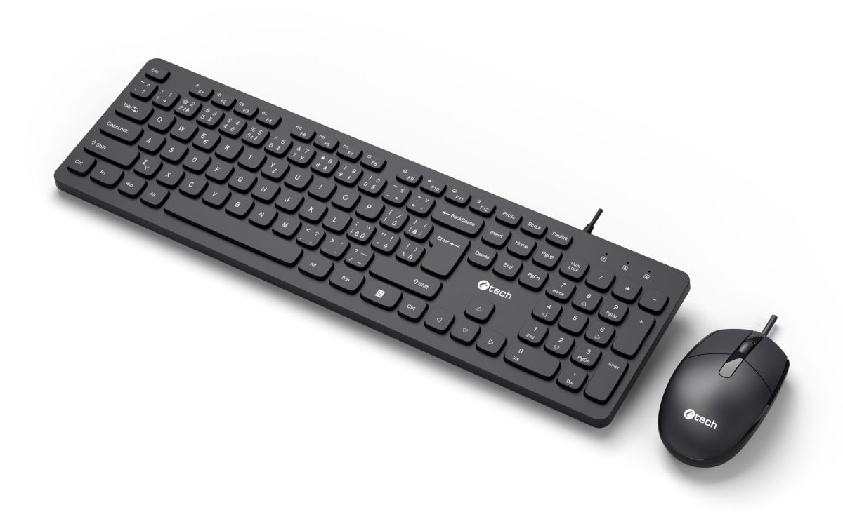 Klávesnica C-TECH KBM-105, drôtový combo set s myšou, USB, CZ/SK KBM-105-BL