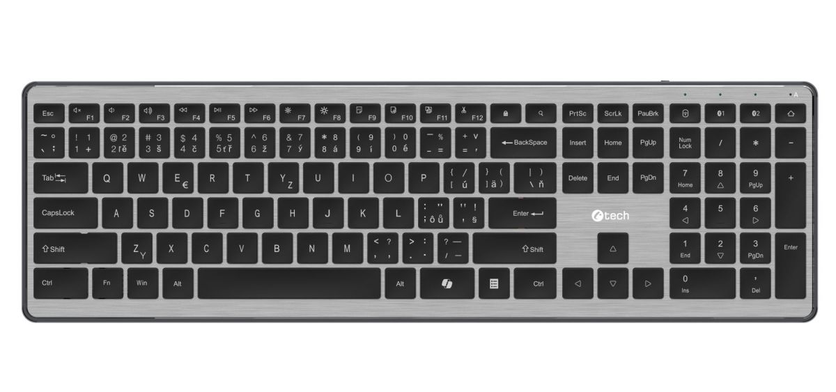 C-TECH KB-102/Drátová USB/ CZ- SK layout/Strieborná KB-102-U-SL