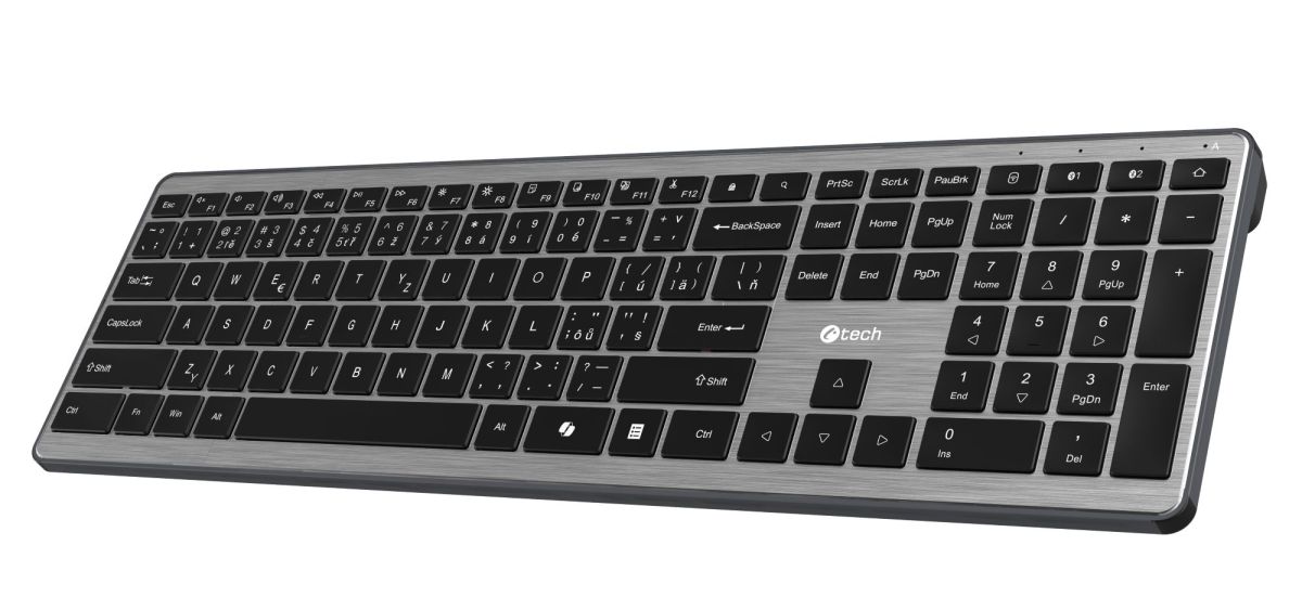 Bezdrôtová klávesnica C-TECH Quallis KB-118 predstavuje prémiové riešenie pre užívateľov, ktorí kladú dôraz na komfort pri písaní, elegantný dizajn a spoľahlivý prevádzku. Vďaka kvalitnému spracovaniu a moderným technológiám je ideálnou voľbou ako pre kanceláriu, tak aj pre domáce použitie.