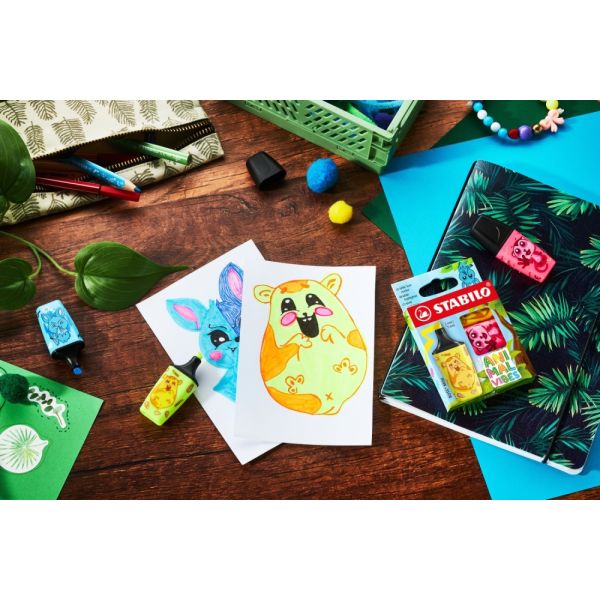 Mini zvýrazňovače STABILO BOSS MINI Animal Vibes sú inšpirované paletou farieb prírody.