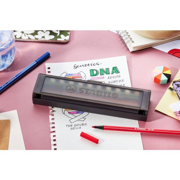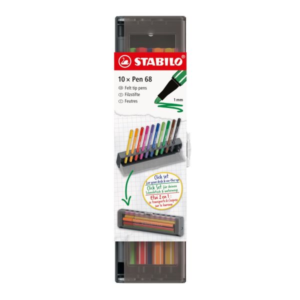 Fixy vláknové STABILO Pen 68 Click Set - stojan na stôl a peračník v jednom (sada 10 ks)