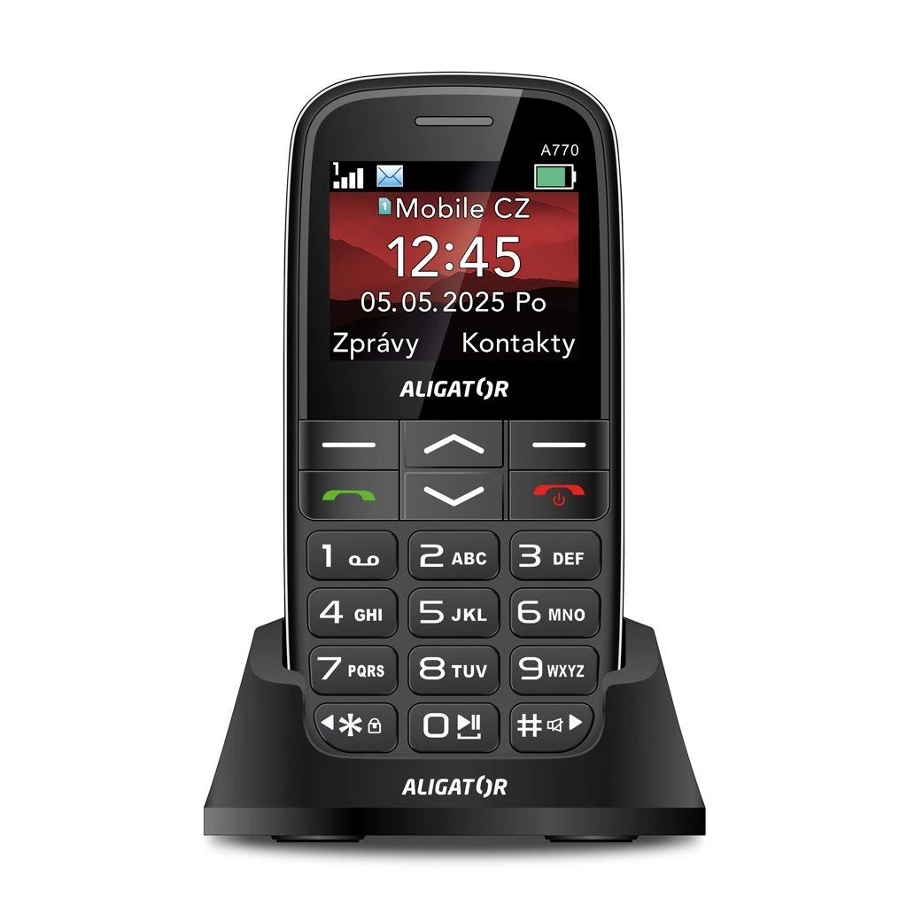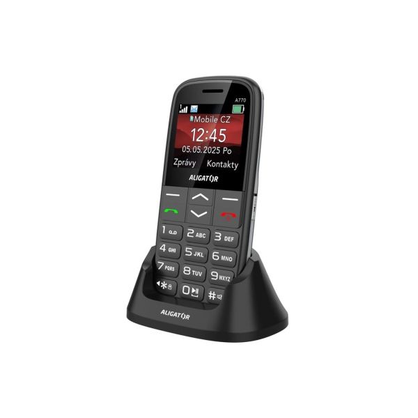 Obsah balenia: Telefón Aligator A770, nabíjací stojan, návod na použitie (bez nabíjačky)