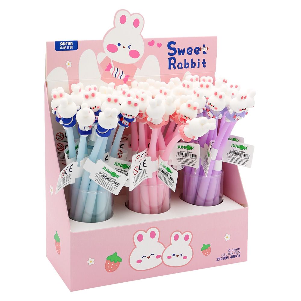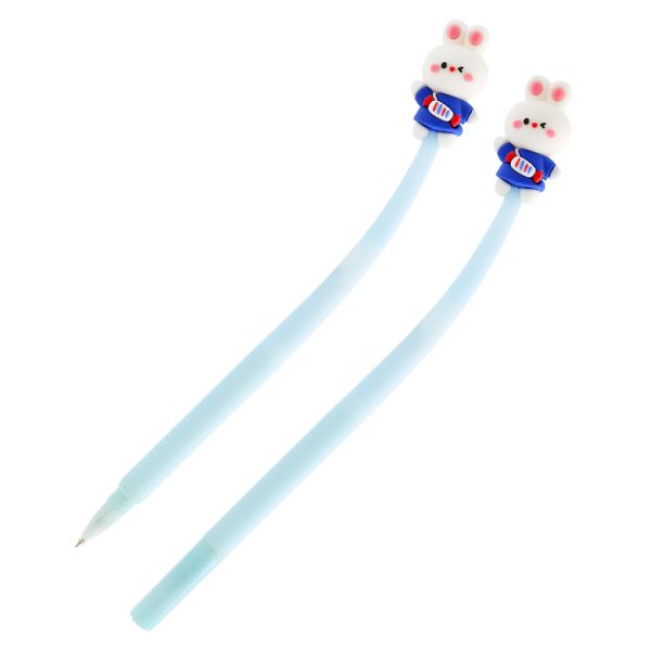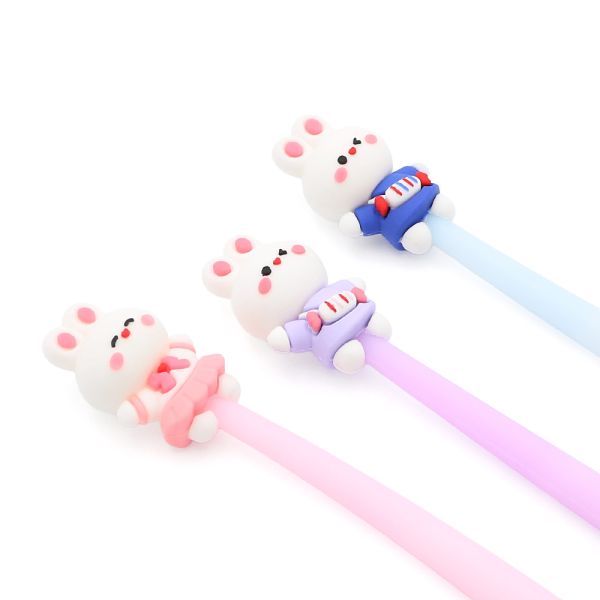 Dlhé gélové pero s gumenou figúrkou zajačika na vrchnom, ohybnom konci (3 farby /3 dizajny).