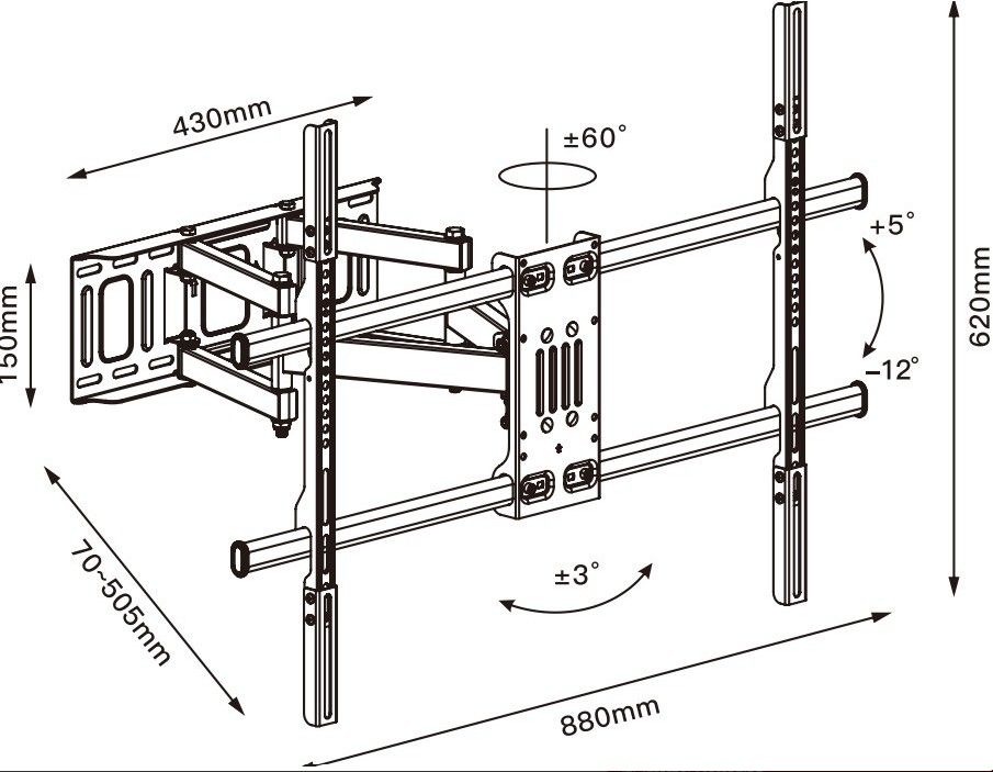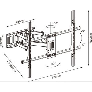Výsuvný nástenný držiak LPA36-443 je určený na inštaláciu TV s plochou obrazovkou s uhlopriečkami od 32“ do 75“. Jeho najväčšia prednostná je robustná výsuvná konštrukcia, vďaka ktorej unesie TV s hmotnosťou až 50 kg a zároveň umožňuje nastaviť vzdialenosť TV od steny v rozsahu 71 mm až 431 mm, samozrejmosťou je potom aj veľký rozsah polohovania. Držiak umožňuje ľahké naklápanie TV v rozsahu +10°-20°, natočenie do strán v rozsahu +90°-90° a rotáciu v rozsahu +3°-3°, čo maximalizuje flexibilitu sledovania z ľubovoľného miesta v miestnosti. Integrovaná priechodka na káble udržuje káble usporiadané a chránené. Hlavné vlastnosti: • Robustná, výsuvná konštrukcia • Nastaviteľná vzdialenosť od steny v rozsahu min. 71 mm, max. 431 mm • Voľne sklopiteľná konštrukcia pre jednoduchú zmenu náklonu TV v uhle +10°~-20° • Výsuvná konštrukcia s možnosťou stranového natočenia v rozsahu +90°~-90° • Možnosť rotácie TV v rozsahu +3°~-3° • Univerzálny dizajn kompatibilný so širokou škálou televízorov rôznych modelov a značiek • Optimalizovaná veľkosť balenia pre nižšie náklady na prepravu a skladovanie tj ideálny produkt pre e-commerce predajcu • Jednoduchá a rýchla montáž • Integrovaná priechodka na uľahčenie organizácie vedenia káblov • Súčasťou dodávky je kompletné montážne príslušenstvo Nástenný držiak pre TV Brateck LPA36-443 je nielen praktickým a funkčným doplnkom pre vašu televíziu, ale aj dizajnovým prvkom do vašej domácnosti alebo kancelárie. S týmto držiakom môžete svoju televíziu umiestniť do ideálnej polohy pre optimálny sledovací zážitok a zároveň si užívať izbu a istotu pevného a bezpečného uchytenia. PARAMETRE: • Zpôsob montáže: Nástenný • Určené pre zariadenia: TV • Počet TV: 1 • Maximálny náklon (hore, dole): +10°/-20° • Maximálne vychýlenie (vpravo, vľavo): +90°/-90° • Maximálne otáčanie TV: +3°/-3° • Maximálna hmotnosť TV: 50 kg • Minimálny rozmer TV: 32“ • Maximálne rozmery TV: 75“ • Podporované rozstupy VESA: 200x200,400x200,300x300,400x400 • Farba: Čierna mat • Rozmery (Š x V x H): 473 mm x 480 mm x 430 mm • Hmotnosť: 3,8 kg