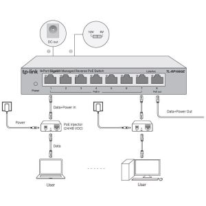 TL-RP108GE: 8-portový gigabitový reverzný prepínač PoE