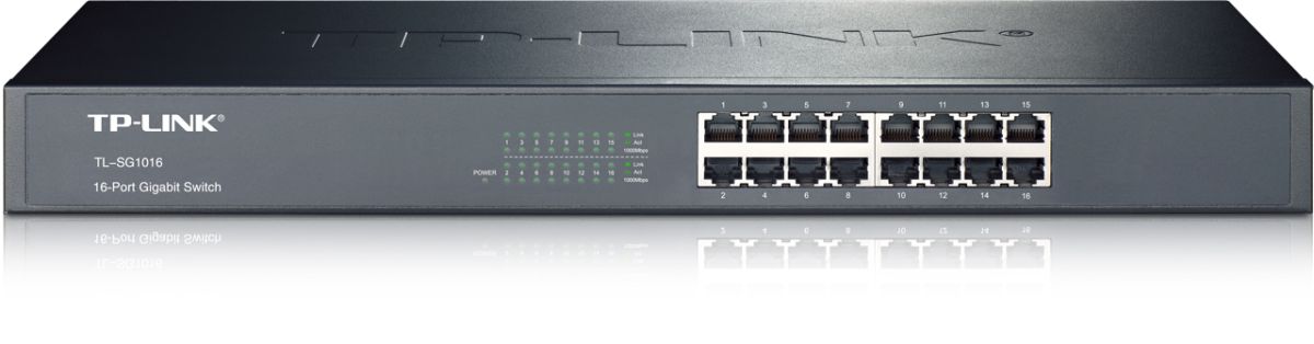 TP-Link TL-SG1016 je neriadený 16-portový gigabitový switch v odolnom ocelovom šasi pre montáž do 19" racku.