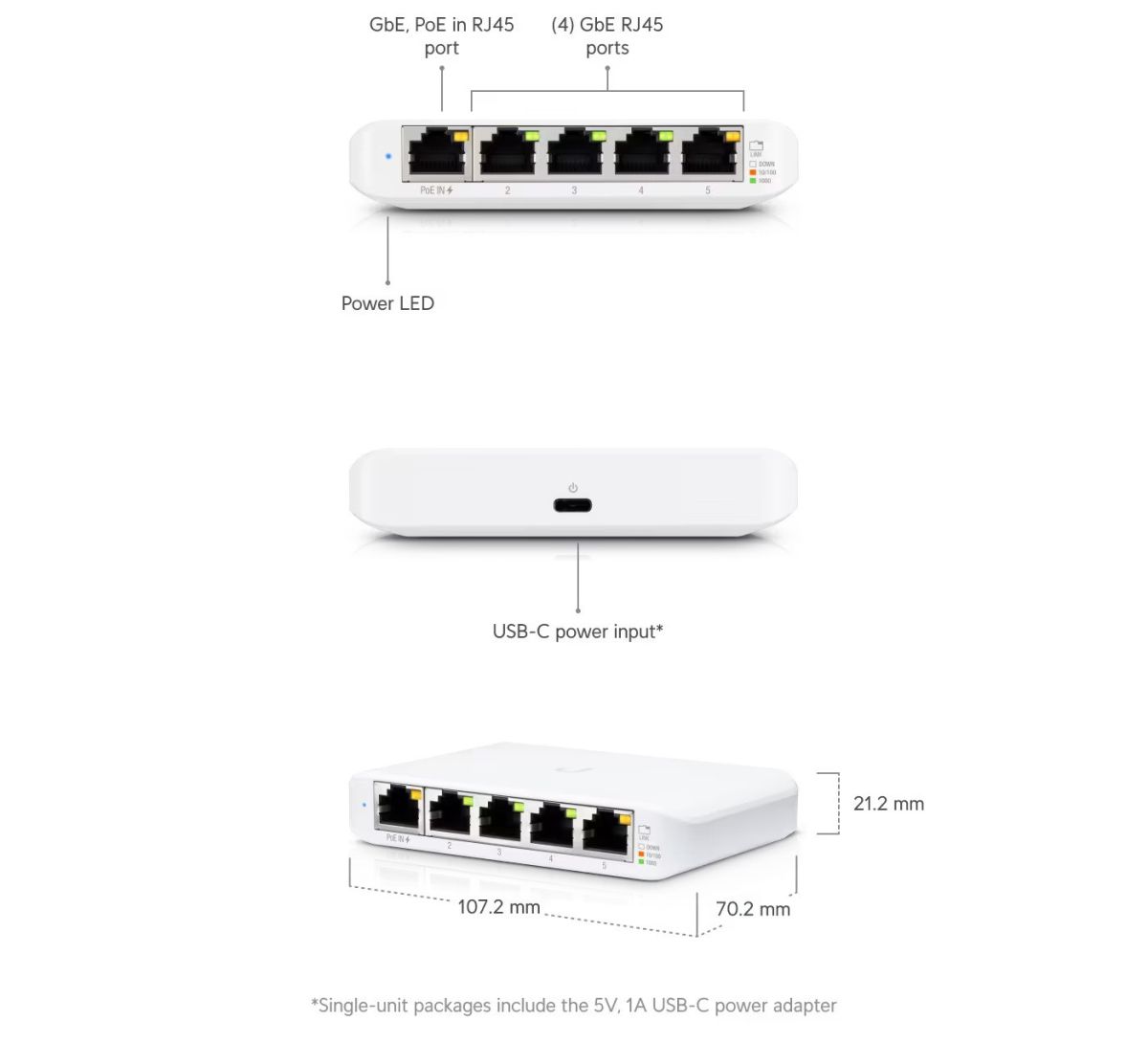 USW-Flex-Mini UniFi Compact 5Port Gigabit Desktop Switch.