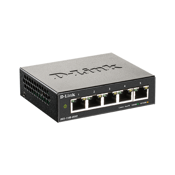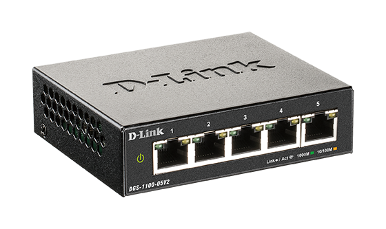 D-Link DGS-1100-05V2 je 5-portový Gigabit Smart riadený prepínač v kompaktnom kovovom prevedení bez ventilátorov, na položenie na stôl, na poličku alebo montáž na stenu. Ponúka základnú sadu L2 funkcií (napr. VLAN, QoS, IGMP Snooping, agregácia liniek) s možnosťou správy z webového rozhrania, pomocou SNMP príkazov alebo nástroja D-Link Network Assistant (DNA). Switch je určený predovšetkým pre kancelárie (SOHO) a malé a stredné podniky (SMB).