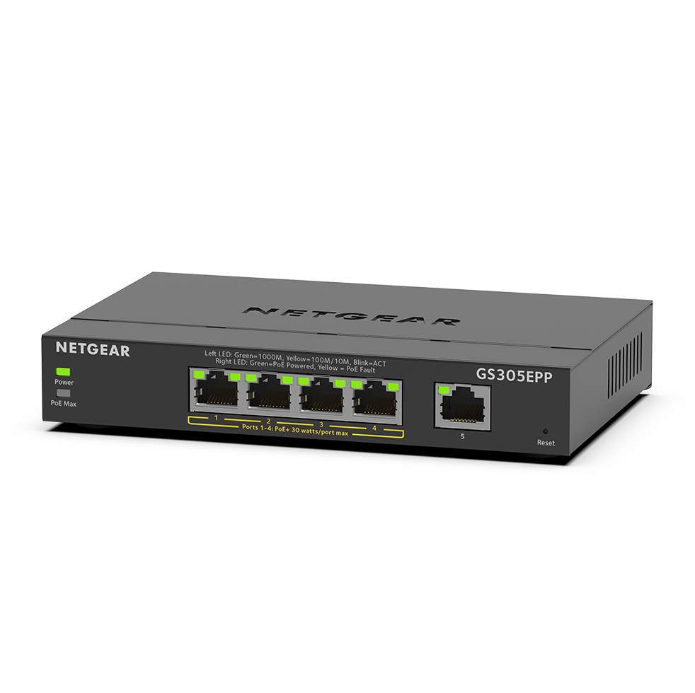 NETGEAR 5PT GE PLUS SWCH W/ HI-PWR POE+ GS305EPP-100PES