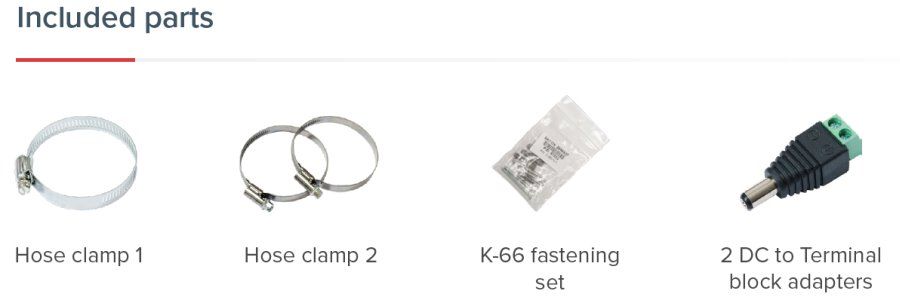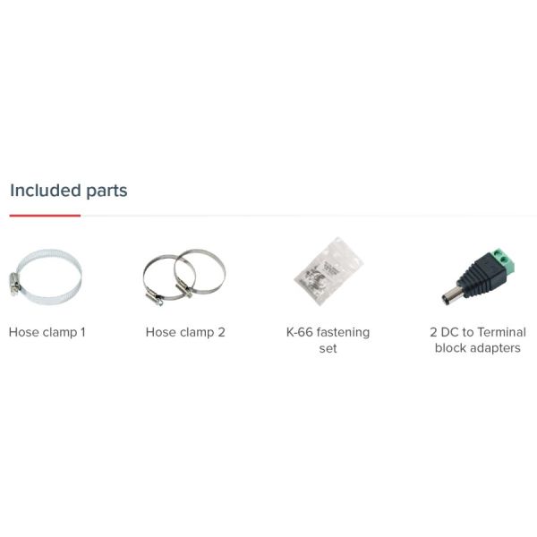 Súčasťou balenia sú pásky na uchytenie na stĺp a napájacie redukcie.