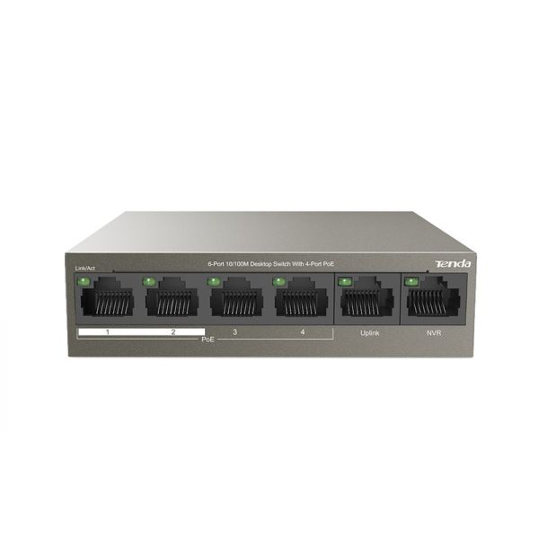 Tenda TEF1006P-4-63W prepína dáta pomocou 6 portov RJ45 s prenosovou rýchlosťou 10/100 Mb/s s automatickou detekciou rýchlosti. Dva porty slúžia ako Uplink a 4 PoE porty podporujú PoE 802.3af a 802.3at. Switch podporuje stabilnú 8 jadrové PoE napájanie, ochrana proti prepätiu 6kV. Podpora prepojovania uzlov v móde Store-and-Forward. Full-duplex kontrola toku 802.3x, half-duplex kontrola toku v režime Back-Pressure. Dva Uplink porty je možné využiť na pripojenie switcha do siete a druhý na pripojenie ďalšieho zariadenia bez PoE, napr. NVR a ďalšie.