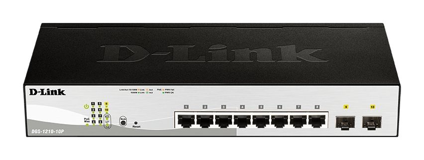 D-Link DGS-1210-10P, 10-port 10/100/1000 Gigabit PoE Smart Switch 2x SFP 65W DGS-1210-10P/E