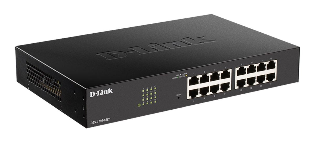 D-Link DGS-1100v2 je nová generácia Gigabit Smart riadených prepínačov určených pre malé a stredné podniky (SMB), pracovné skupiny (workgroup) a kancelárie (SOHO). Model DGS-1100-16v2 je osadený 16 metalickými portami 10/100/1000Base-T RJ-45. Je v kovovom prevedení o veľkosti 1U a šírke 11 "(28cm). Súčasťou dodávky sú držiaky na inštaláciu do 19" rozvádzača. Prevedenie bez vetrákov zaisťuje tichý chod, switch je možné umiestniť aj priamo v kancelárii na stôl či poličku.