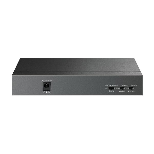 * Osem portov PoE 10/100 Mbit/s kompatibilných so štandardom 802.3af/at umožňuje jednoduché pripojenie a napájanie pevne pripojených zariadení, ako sú IP kamery, prístupové body a IP telefóny, a to prostredníctvom jediného kábla. Výstupné napájanie PoE s výkonom až 30 W je podporované na každom porte PoE.