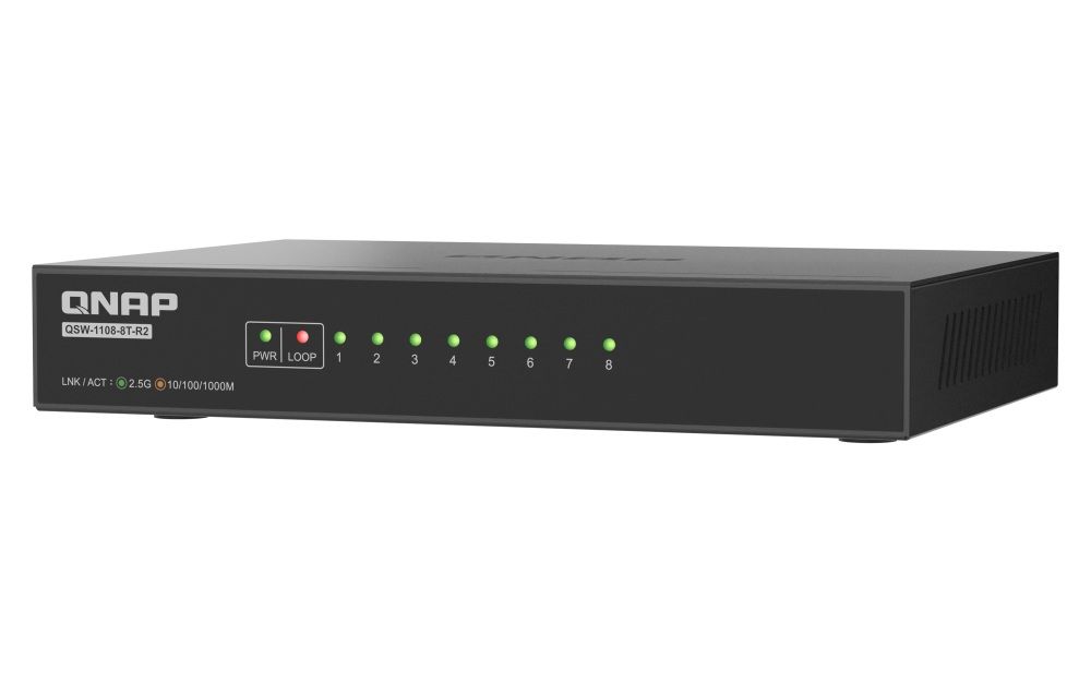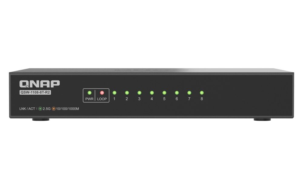 QNAP switch QSW-1108-8T-R2 (8x 2,5GbE port, pasívne chladenie, podpora 100M/1G/2,5G) QSW-1108-8T-R2