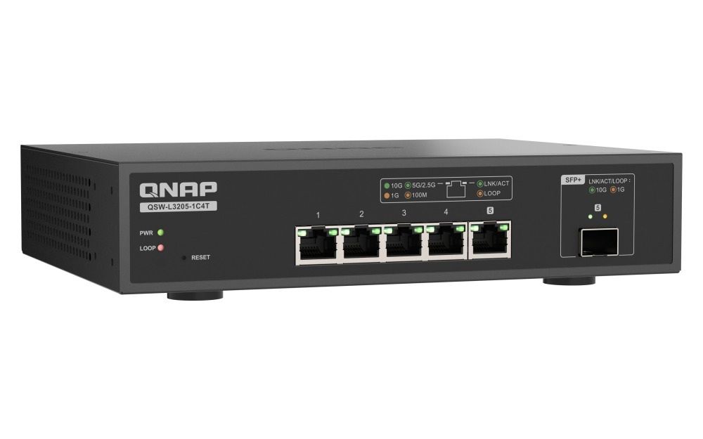 QNAP switch QSW-L3205-1C4T (4x 10GbE port, 1x 10G SFP+/NBASE-T Combo, Lite Managed) QSW-L3205-1C4T