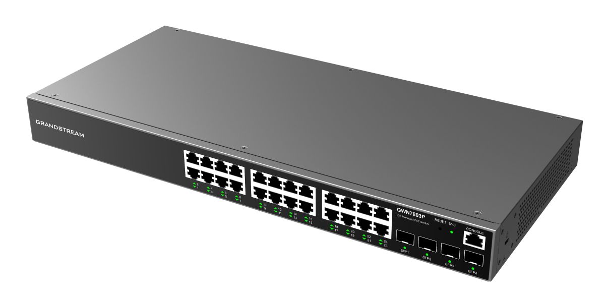 Grandstream GWN7803P L2+ Managed Network PoE Switch 24x 1Gb RJ45, 4x SFP, DHCP, QoS, VLAN GWN7803P