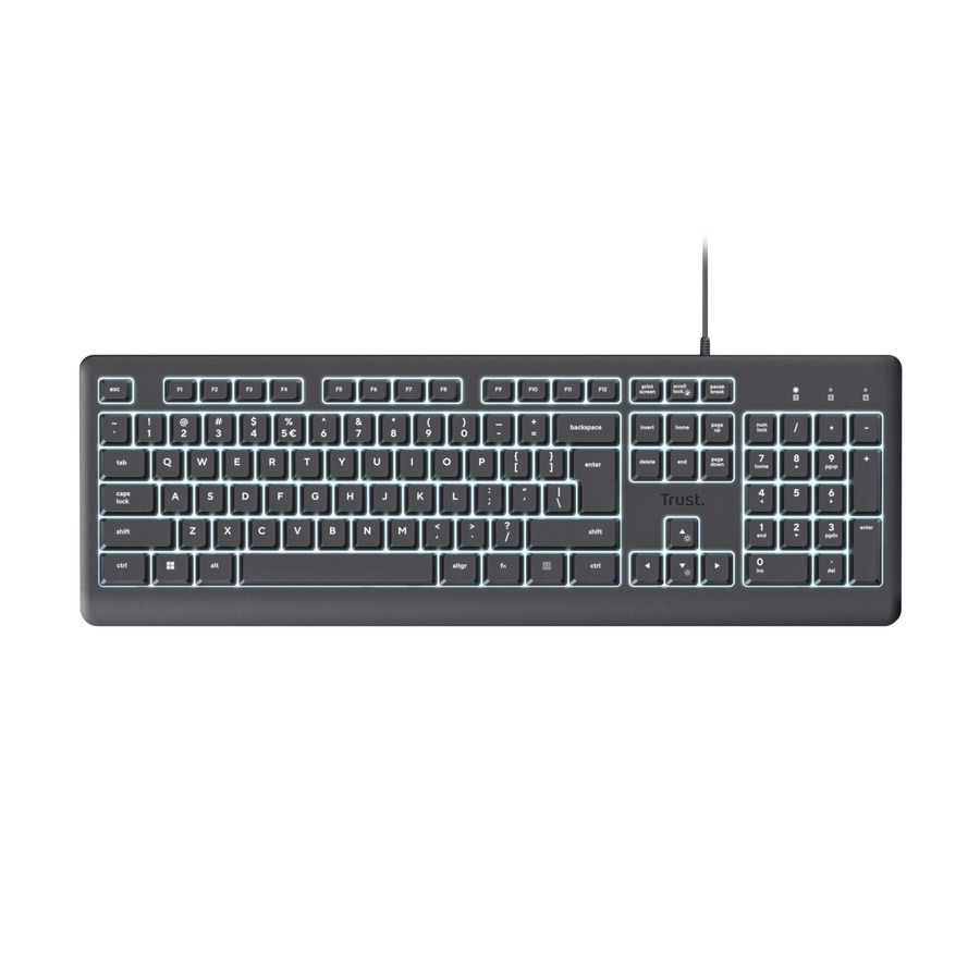 Pracujte nepretržite s klávesnicou Trust Primo Illuminated. Táto tichá klávesnica je vybavená podsvietenými klávesmi LED pre ľahké čítanie bez ohledu na deň. Umožňuje úpravu jasu pomocou klávesov Fn podľa svojho prostredia. Klávesnica je vyrobená zo 70% recyklovaných plastov pre vyššiu produktivitu.