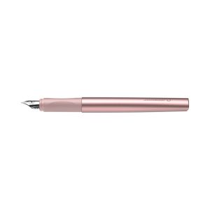 Plniace pero na bombičku s elegantným kovovým vzhľadom v ružovej farbe a výraznými krivkami. ergonomické pogumované uchytenie proti zošmyknutiu prstov štandardné bombičky s modrým atramentom, ktorý…