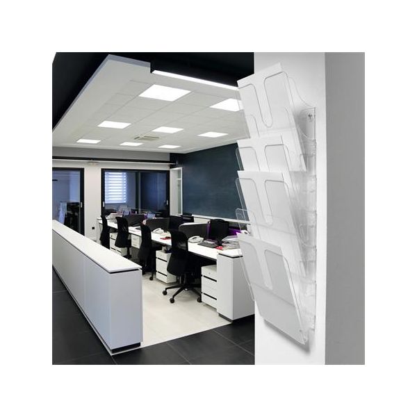 - pre dokumenty formátu A4 - pozostáva z modulu šiestich držiakov - ideálne pre recepcie, showroomy, salóniky a výstavy - rozmery: 247x745x100 mm