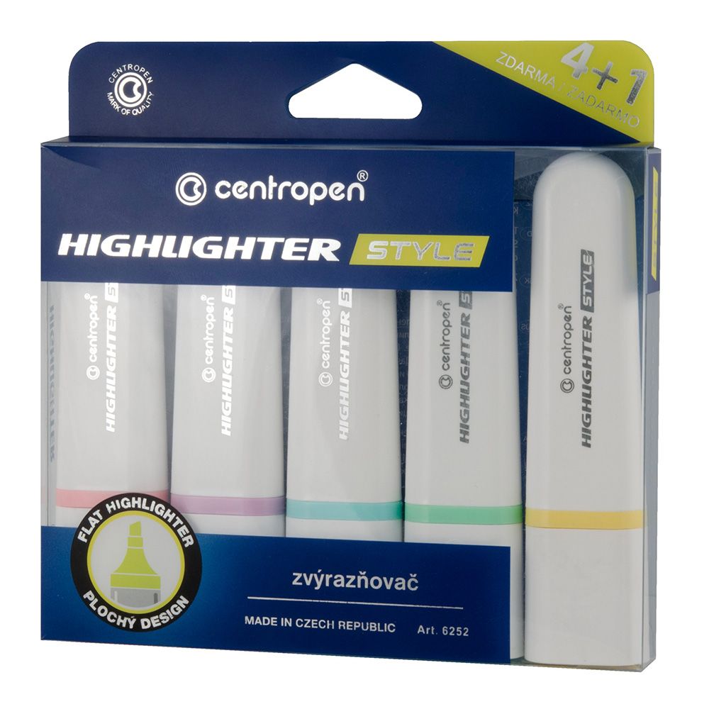 Zvýrazňovač CENTROPEN 6252 STYLE SOFT 1-5 mm, sada 4 ks + 1 ks ZDARMA