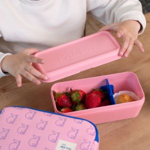 Potravinový box na desiatu MILAN PINK. Odoláva teplotám -20 do + 70 stupňov Celzia. Možné použiť v mikrovlnnej rúre a chladničke. Umývanie ručne alebo v umývačke. Objem: 0,33 l.