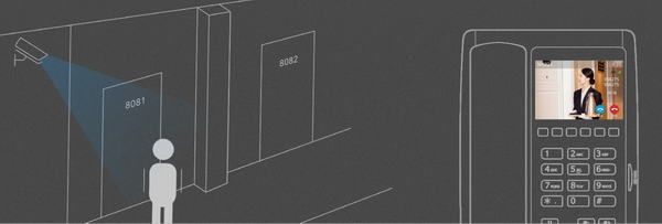 Keď je Fanvil H5W prepojený so SIP dverovými telefónmi, interkomy alebo kamerou pri dvere, umožňuje vám predom zobraziť video obraz návštevníkov a dosiahnuť vzdialené odomknutie dverí.