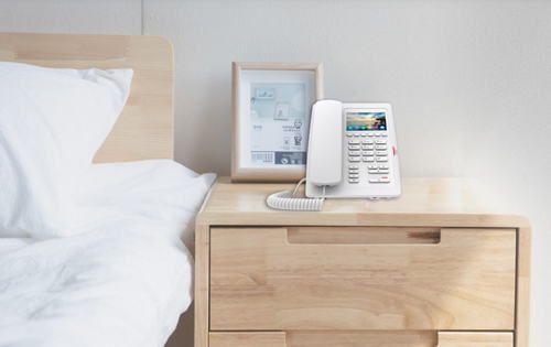 Fanvil H5W má 3,5 palcovú farebnú obrazovku. Manažéri hotelov si môžu sami prispôsobiť informácie na obrazovke z web manažmentu IP telefónu.