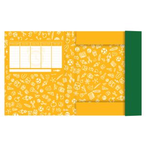 Nevyhnutná súčasť vybavenia každého školáka na uloženie zošitov, papierov a ďalších školských pomôcok. odolný materiál - lamino, chráni proti poškodeniu zatváranie na gumičku šírka chrbta 3 cm hmotnosť: 150g