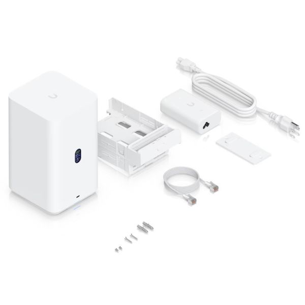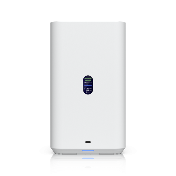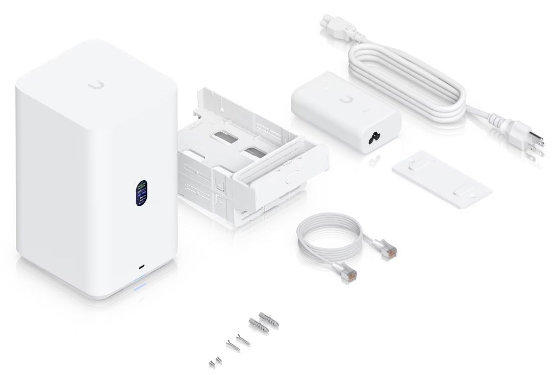 * Zariadenie disponuje farebným 1.47" LCM displejom pre rýchle informácie o stave a podporuje správu cez UniFi Drive aplikáciu.