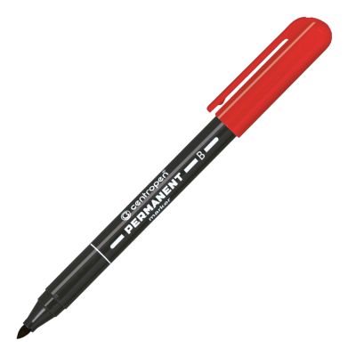 Permanentný popisovač - červený. Píše na väčšinu povrchov - píše na papier, gumu, kožu, plasty, kovy. Odolá vode, oteru, poveternostným vplyvom. Atrament na alkoholovej báze. Valcový hrot so šírkou stopy 2 mm.