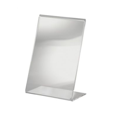 Reklamný stojan na dokumenty v tvare L - naklonený. Formát A5 / 148 x 210 mm. Vyrobené z tvrdého PVC. Na použitie pre letáky, katalógy alebo dokumenty. Ľahko sa čistí.