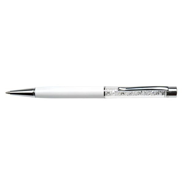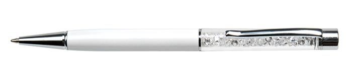 Guľôčkové pero, s bielym krištáľom SWAROVSKI®, 14 cm, ART CRYSTELLA, krémovo biela
