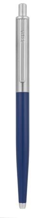 Jednorazové pero s priehľadným čírym telom modrej farby a tvarovaným vrubkovaným úchopom. Šírka stopy 0,7 mm.
