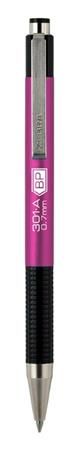 Guľôčkové pero s plastovým telom a ergonomicky tvarovaným gumovým úchopom. Priemer hrotu je 0.7 mm. Dodávané vo farbách: modrá, žltá, červená, biela. Náplň modrá. Jednorazová náplň.