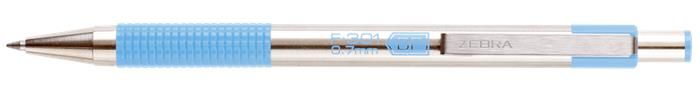Guľôčkové pero, 0,24 mm, stláčací mechanizmus, nerezová oceľ, farba tela: pastelová modrá, ZEBRA "F-301", modré