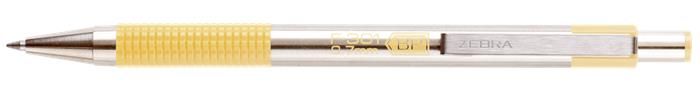 Guľôčkové pero, 0,24 mm, stláčací mechanizmus, nerezová oceľ, farba tela: pastelová žltá, ZEBRA "F-301", modré