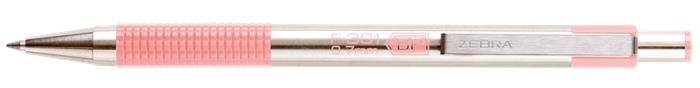 Guľôčkové pero, 0,24 mm, stláčací mechanizmus, nerezová oceľ, farba tela: pastelová ružová, ZEBRA "F-301", modré