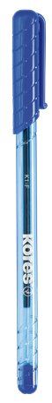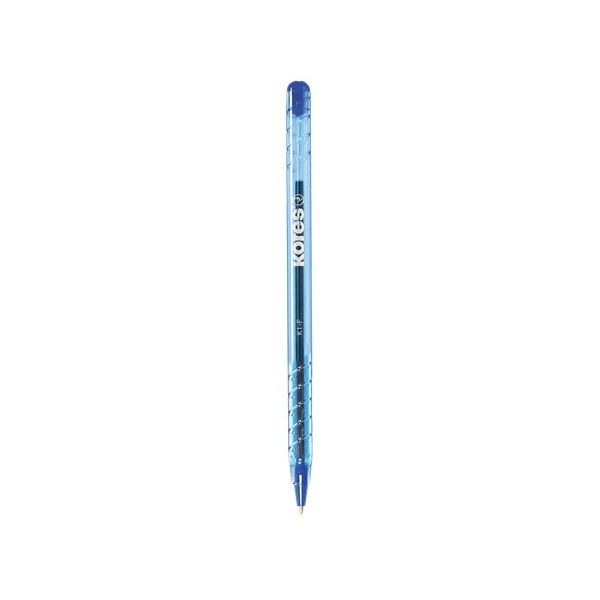 Jednorazové pero s priehľadným čírym telom modrej farby a tvarovaným vrubkovaným úchopom. Šírka stopy 0,7 mm.