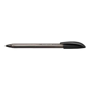 Jednorazové pero s priehľadným čírym telom, so zakončením a uzáverom vo farbe tela. Pero je zakončené kovovým hrotom. Farba čierna 1,0 mm.