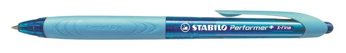 Guľôčkové pero, 0,35 mm, stláčací mechanizmus, modré telo, STABILO "Performer+", modré