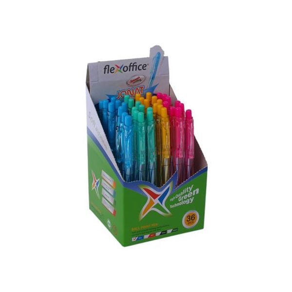 Guľôčkové pero, 0,25 mm, stláčací mechanizmus, rôzne farby tela, FLEXOFFICE "Jonat", modrá