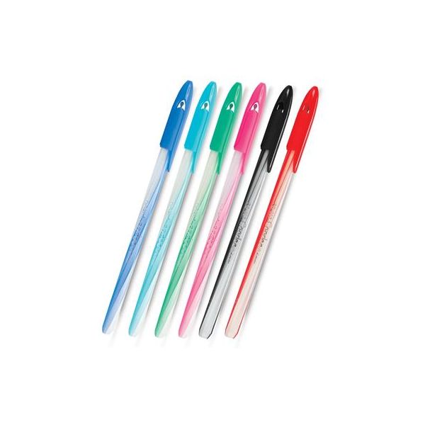 Guľôčkové pero s plastovým telom a ergonomicky tvarovaným gumovým úchopom. Priemer hrotu je 0.7 mm. Dodávané vo farbách: modrá, žltá, červená, biela. Náplň modrá. Jednorazová náplň.
