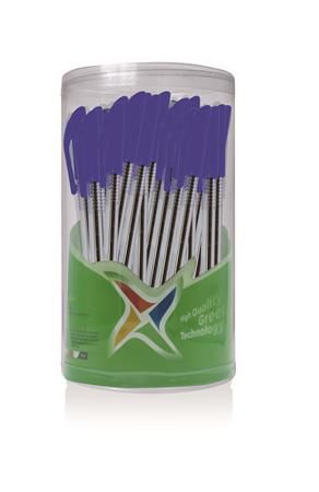 Guľôčkové pero s plastovým telom a ergonomicky tvarovaným gumovým úchopom. Priemer hrotu je 0.7 mm. Dodávané vo farbách: modrá, žltá, červená, biela. Náplň modrá. Jednorazová náplň.