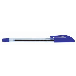 Jednorazové pero s priehľadným čírym telom modrej farby a tvarovaným vrubkovaným úchopom. Šírka stopy 0,7 mm.