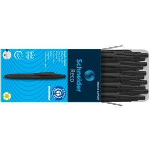 Guľôčkové pero, 0,5 mm, SCHNEIDER "Reco M", čierna, s náplňou 0,5 mm,"Eco 725 M", modrá