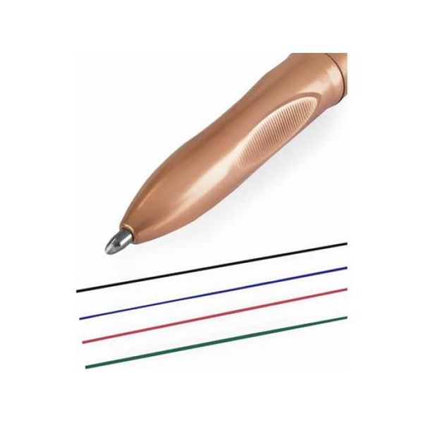 Guľôčkové pero s plastovým telom a ergonomicky tvarovaným gumovým úchopom. Priemer hrotu je 0.7 mm. Dodávané vo farbách: modrá, žltá, červená, biela. Náplň modrá. Jednorazová náplň.