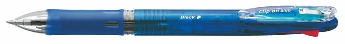 Guľôčkové pero, 0,24 mm, stláčací mechanizmus, 4 farby, ZEBRA "Clip-on Slim 4C", modrá